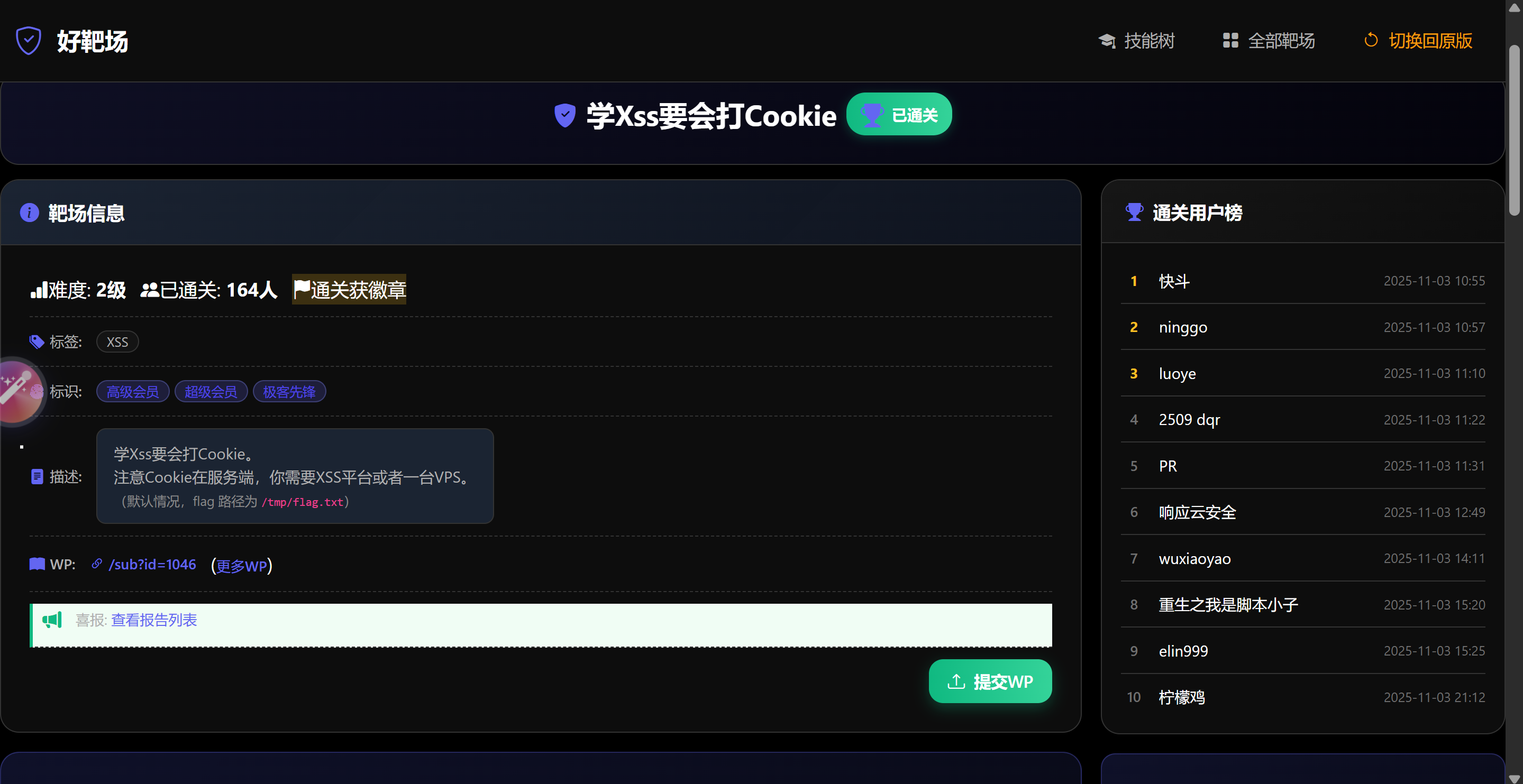 接着试着抓取用户cookie来触发xss漏洞(因为本靶场的通关条件为触发xss漏洞)